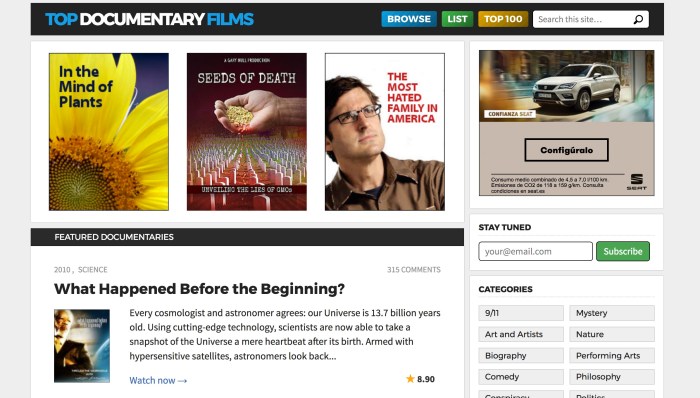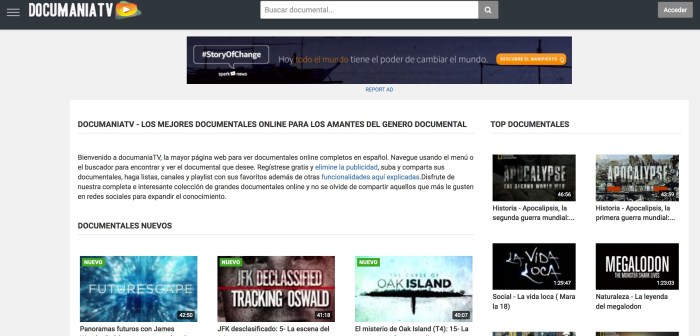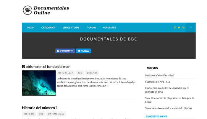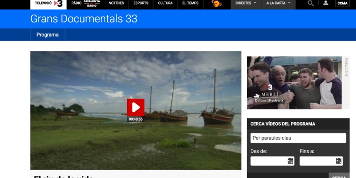 A continuació podeu gaudir d’un recull de pàgines web on trobareu documentals de tot tipus. Malgrat ser una pàgina dedicada eminentment al món del llargmetratge de ficció, no volem passar per alt aquest gènere cinematogràfic molt útil també per a treballar a l’aula diferents matèries, o bé simplement, passar una bona estona estimulant l’esperit crític tot aprenent.