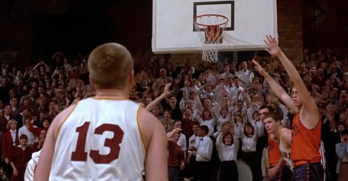 5. En una escena de Hossiers, l’entrenador pren mesures de la distància que hi ha del punt de llançament de tirs lliures a la cistella, i des d’aquesta a terra. Per què ho fa?