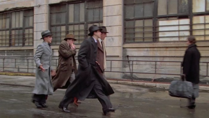 Norma bàsica: Per una única acció és necessari respectar l’eix. En cas de disposar de diferents preses d’un trajecte per diferents escenaris, s’ha de respectar el sentit de la marxa. Fixem-nos com el mestre Sergio Leone mostra la marxa dels seus personatges a Once Upon a time in America (1985), sempre van d’esquerra a dreta: