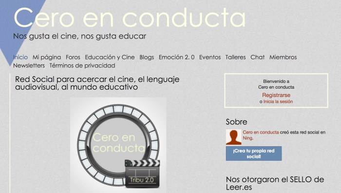 Aquesta pàgina web “Red Social para acercar el cine, el lenguaje audiovisual, al mundo educativo” promou la relació cocreativa entre creadors i escola. Dóna a conèixer nous projectes audiovisuals i fomenta el que a vegades no som conscients del tot, la formació necessària que es requereix com a espectador, per fer una lectura crítica de tot el que veiem. També s’hi poden trobar recomanacions de pel.lícules per a treballar diferents àrees. Destacar la idea que hi apareix d’un pla audiovisual pel centre, ja no només per fixar quines plataformes de distribució de continguts o suports s’usaran, sinó de la mateixa manera que existeix un pla de lectura, planificar quins continguts audiovisuals es treballaran i amb quina finalitat.