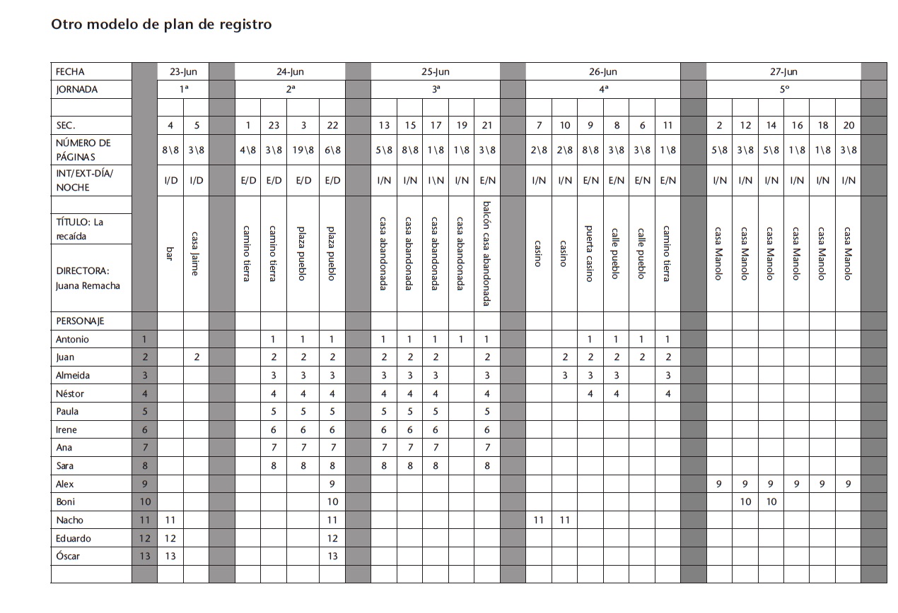 - Script: secretàri/a de rodatge, dóna continuïtat als diàlegs i l’acció (raccord entre preses); anota canvis en el text; realitza a diari informes de seguiment.